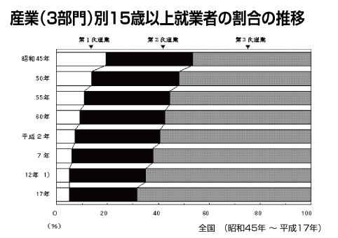 中でも農業や林業、漁業などの一次産業は昭和30年以降、減少を続けております。